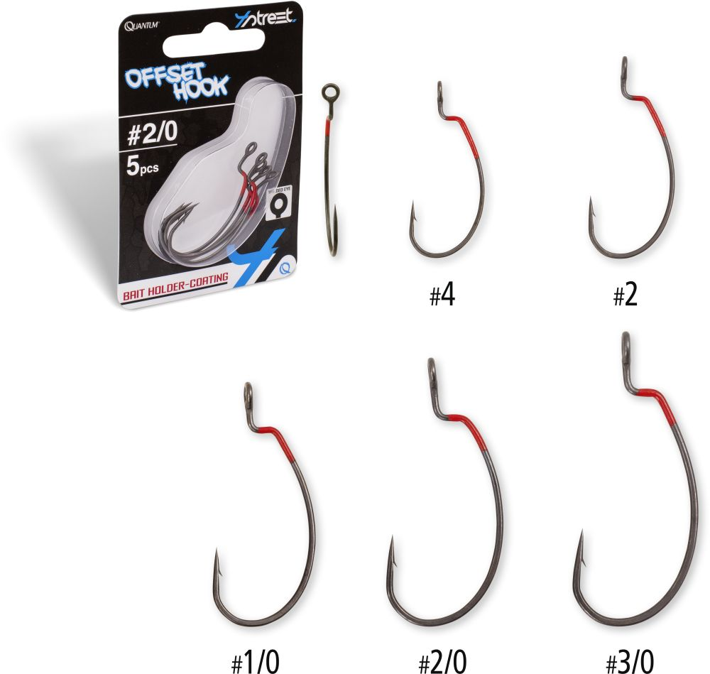 Quantum 4Street Offset Hook are an offset hook with a wide gape to present soft lures even more naturally and with greater stability during retrieval without twisting. The special feature is the unique red coated Bait Holder Coating around the head of the hook, which prevents soft baits from slipping so easily and keeps them in position for longer. The eye of the 4Street Offset Shot Hook is soldered and has no opening, enabling the use of the lightest leaders.